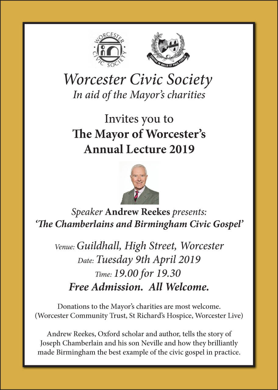 « All Events This event has passed. The Mayor Of Worcester’s Annual Lecture April 9, 2019 @ 7:00 pm - 9:00 pm « Worcestershire Law Society Awards 2019 – with Guest Speaker, Wayne Barnes Digital Legacy Workshop » + Google Calendar+ iCal Export Details Date: April 9, 2019 Time: 7:00 pm - 9:00 pm Organizer Worcester Civic Society Venue Guildhall The Guildhall Worcester, Worcestershire WR1 2EY United Kingdom + Google Map